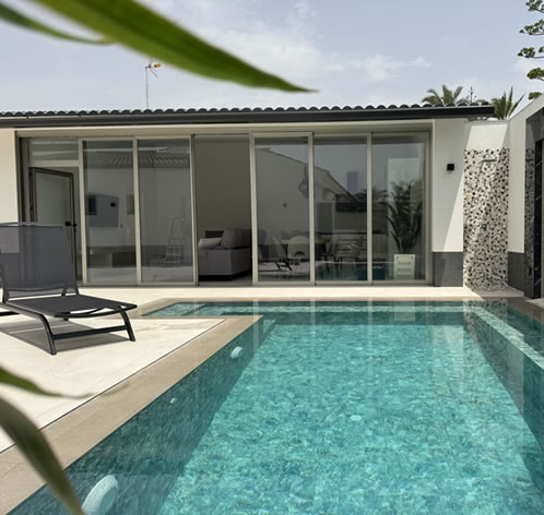 Con acceso directo desde el salón y la cocina, la zona de piscina se convierte en el corazón del exterior de la villa.